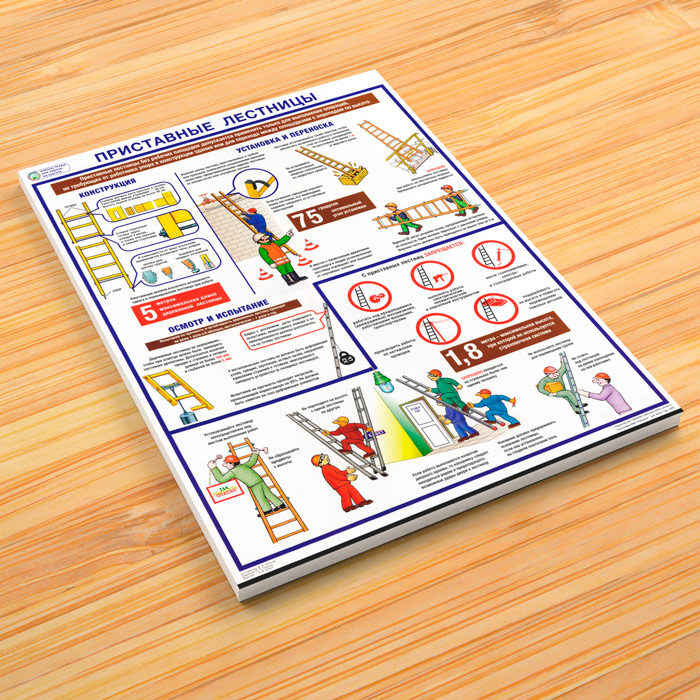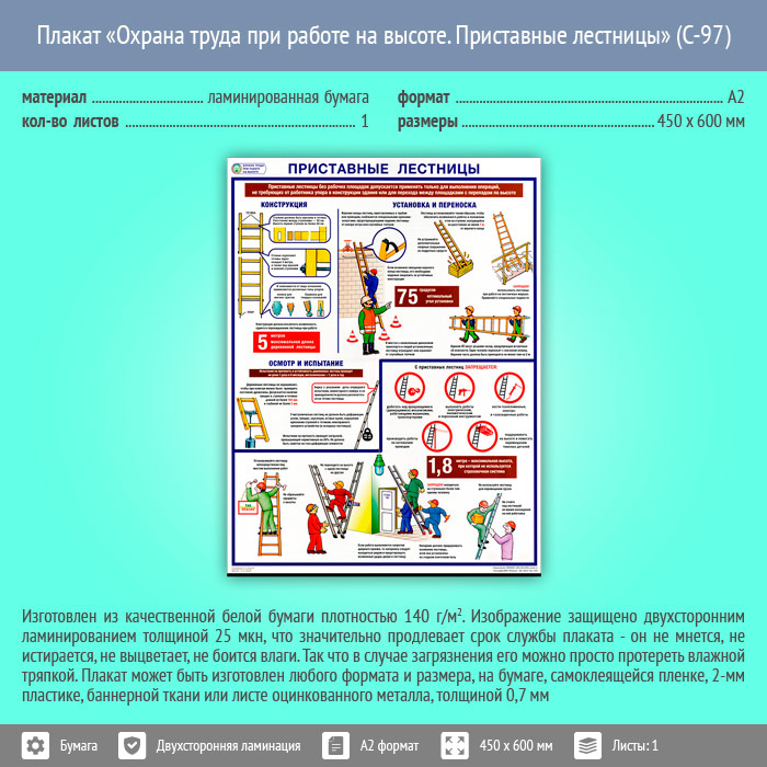 Плакат «Охрана труда при работе на высоте. Приставные лестницы» (С-97, ламинированная бумага, А2, 1 лист) в Кызыле купить