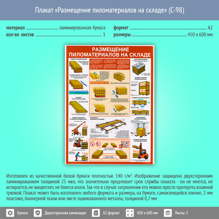 Плакат «Размещение пиломатериалов на складе» (С-98, ламинированная бумага, А2, 1 лист) в Кызыле купить