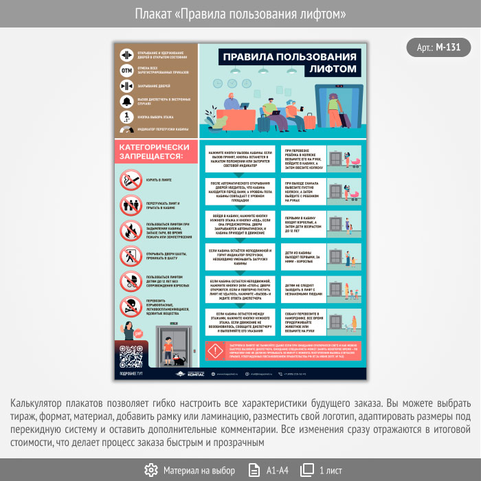 Плакат «Правила пользования лифтом» с QR (М-131, 1 лист) в Кызыле купить