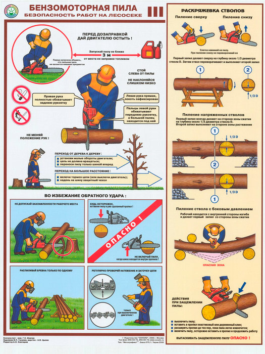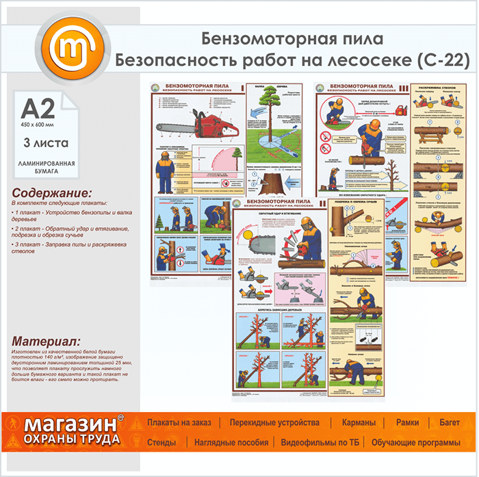 Плакаты «Бензомоторная пила. Безопасность работ на лесосеке» (С-22, ламинированная бумага, А2, 3 листа) в Кызыле купить