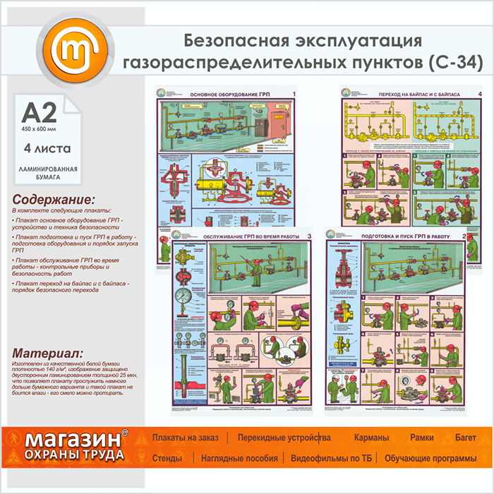 Плакаты «Безопасная эксплуатация газораспределительных пунктов» (С-34, ламинированная бумага, А2, 4 листа) в Кызыле купить