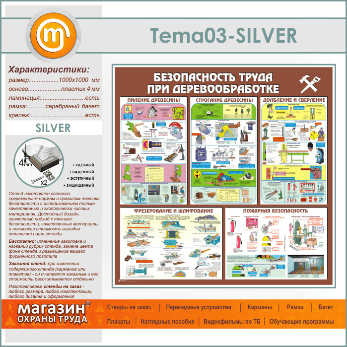 Стенд «Безопасность труда при деревообработке» (TM-03-SILVER) в Кызыле купить