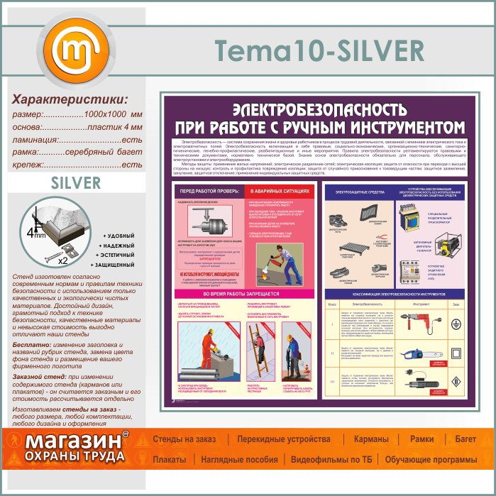 Стенд «Электробезопасность при работе с ручным инструментом» (TM-10-SILVER) в Кызыле купить
