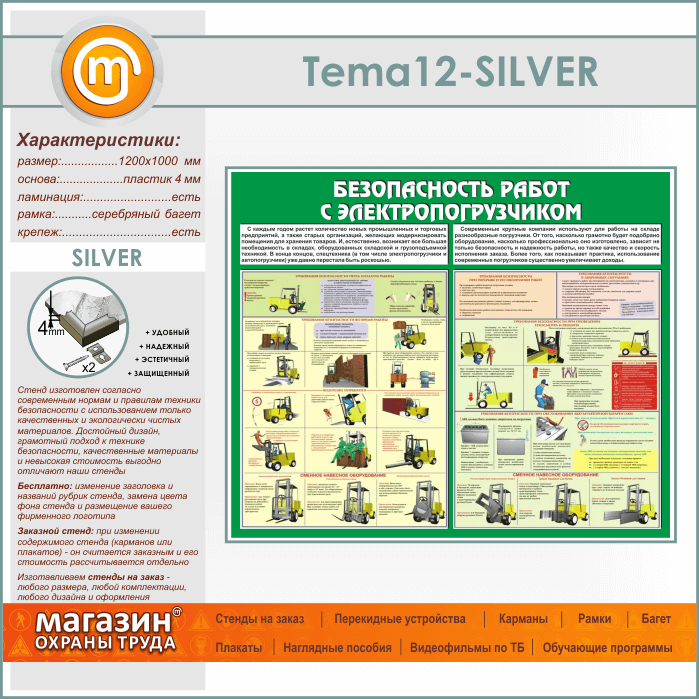 Стенд «Безопасность работ с электропогрузчиком» (TM-12-SILVER) в Кызыле купить