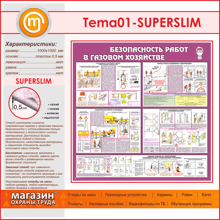Стенд «Безопасность работ в газовом хозяйстве» (TM-01-SUPERSLIM) в Кызыле купить