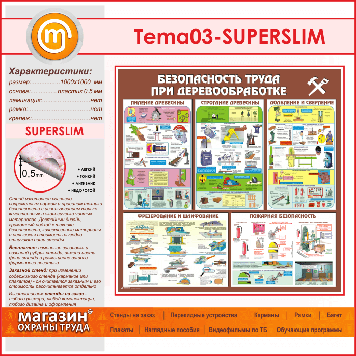 Стенд «Безопасность труда при деревообработке» (TM-03-SUPERSLIM) в Кызыле купить