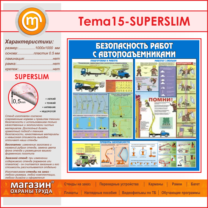 Стенд «Безопасность работ с автоподъемниками» (TM-15-SUPERSLIM) в Кызыле купить