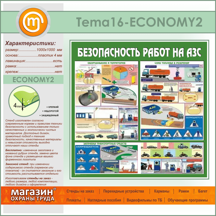 Стенд «Безопасность работ на автозаправочных станциях» (TM-16-ECONOMY2) в Кызыле купить