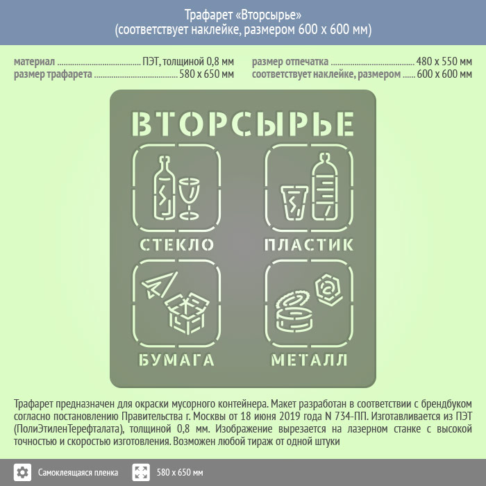 Трафарет «Вторсырье» (соответствует наклейке, размером 600х600 мм) в Кызыле купить