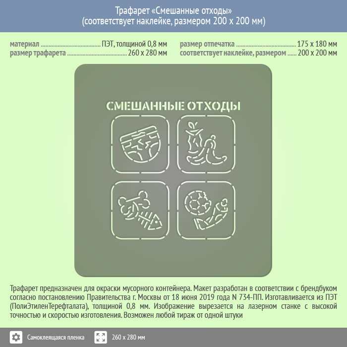 Трафарет «Смешанные отходы» (соответствует наклейке, размером 200х200 мм) в Кызыле купить