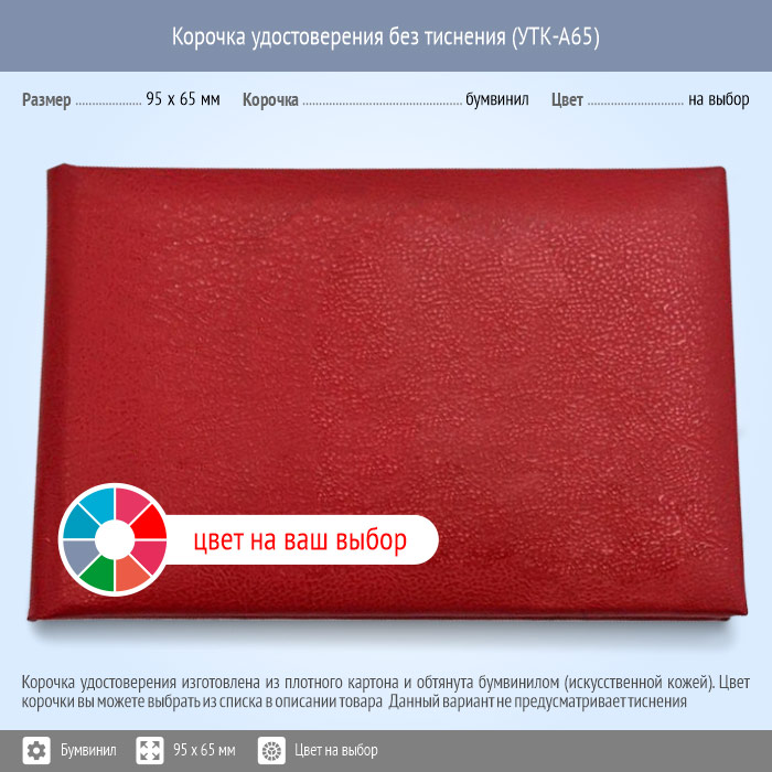 Бланк удостоверения без тиснения, цвет на выбор, 95 x 65 мм (УТК-А65) | Бланк удостоверения без тиснения, цвет на выбор, 95 x 65 мм (УТК-А65) |