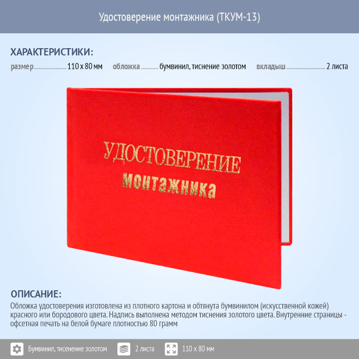 Бланк удостоверения монтажника (ТКУМ-13) в Кызыле купить