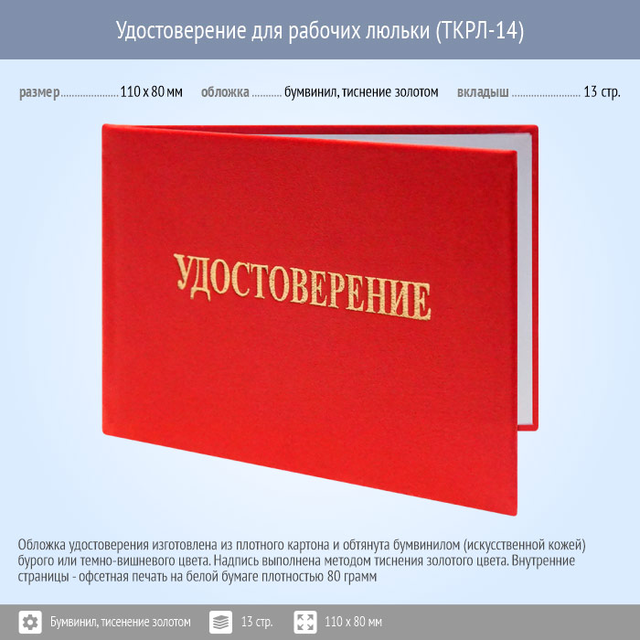 Бланк удостоверения для рабочих люльки (ТКРЛ-14) в Кызыле купить