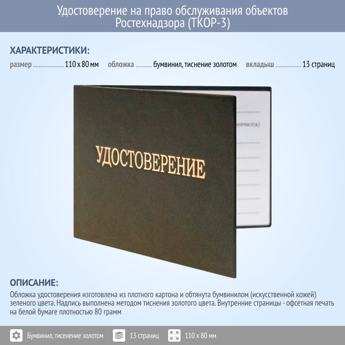 Бланк удостоверения на право обслуживания объектов Ростехнадзора (ТКОР-3) в Кызыле купить