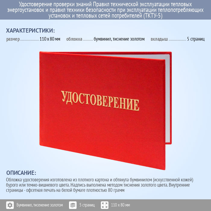 Бланк удостоверения проверки знаний Правил технической эксплуатации тепловых энергоустановок и правил техники безопасности при эксплуатации теплопотребляющих установок и тепловых сетей потребителей (ТКТУ-5) в Кызыле купить
