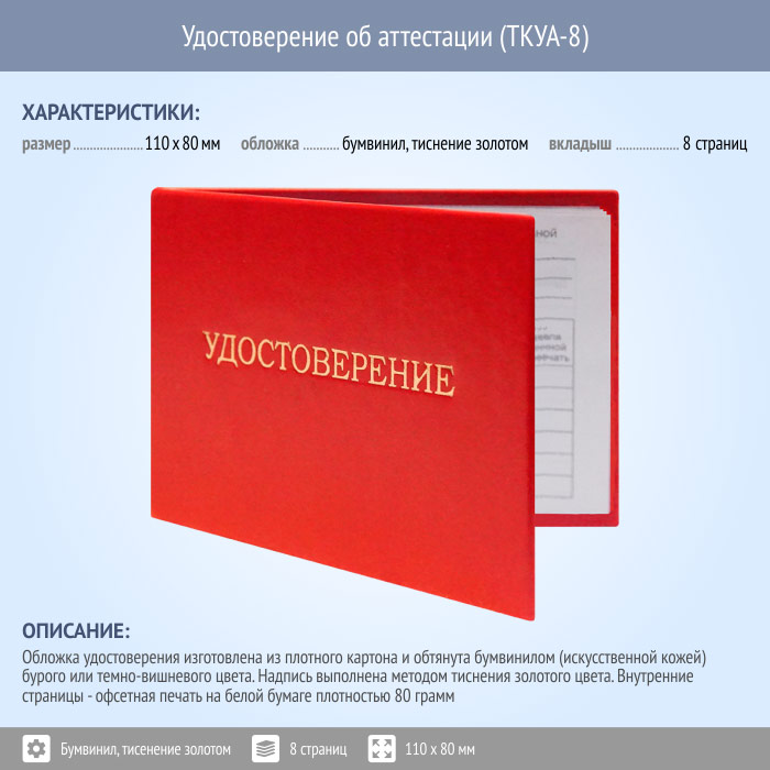 Бланк удостоверения об аттестации (ТКУА-8) в Кызыле купить