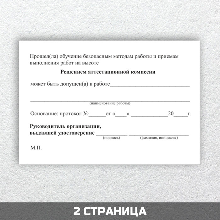 Бланк удостоверения о допуске к работе на высоте (ТКУВ-10) в Кызыле купить