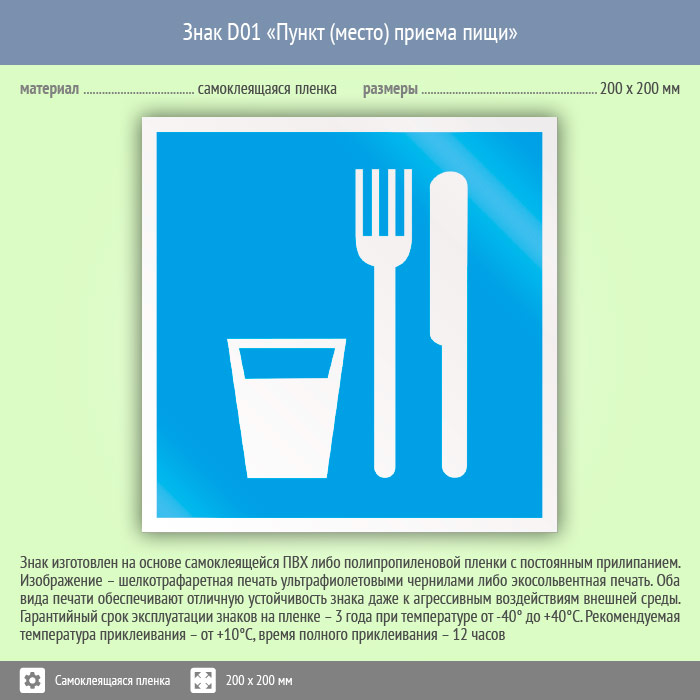Знак D01 «Пункт (место) приема пищи» (пленка, 200х200 мм) в Кызыле купить