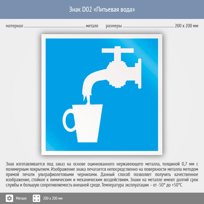 Знак D02 «Питьевая вода» (металл, 200х200 мм) в Кызыле купить