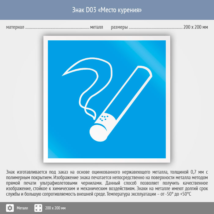 Знак D03 «Место курения» (металл, 200х200 мм) в Кызыле купить