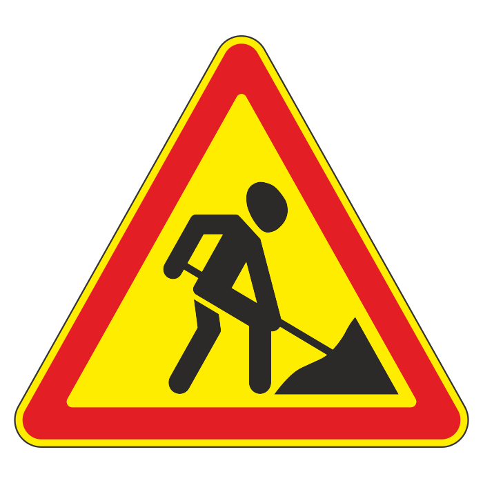Дорожный знак 1.25 «Дорожные работы» (временный) (металл 0,8 мм, II типоразмер: сторона 900 мм, С/О пленка: тип А инженерная) в Кызыле купить