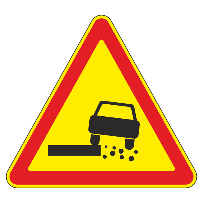 Дорожный знак 1.19 «Опасная обочина» (временный) (металл 0,8 мм, IV типоразмер: сторона 1500 мм, С/О пленка: тип В алмазная) в Кызыле купить
