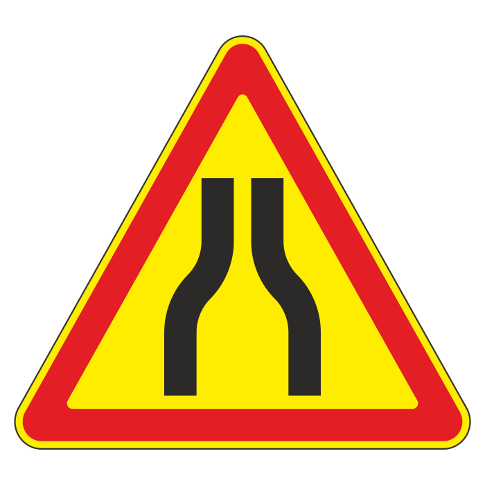 Дорожный знак 1.20.1 «Сужение дороги» (временный) (металл 0,8 мм, III типоразмер: сторона 1200 мм, С/О пленка: тип Б высокоинтенсивная) в Кызыле купить
