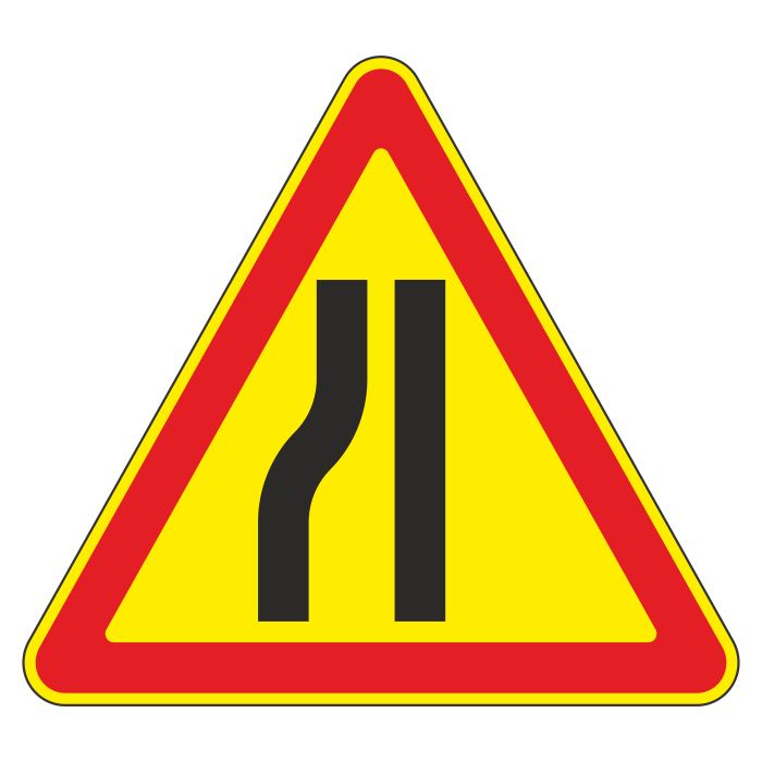 Дорожный знак 1.20.3 «Сужение дороги» (временный) (металл 0,8 мм, I типоразмер: сторона 700 мм, С/О пленка: тип А инженерная) в Кызыле купить