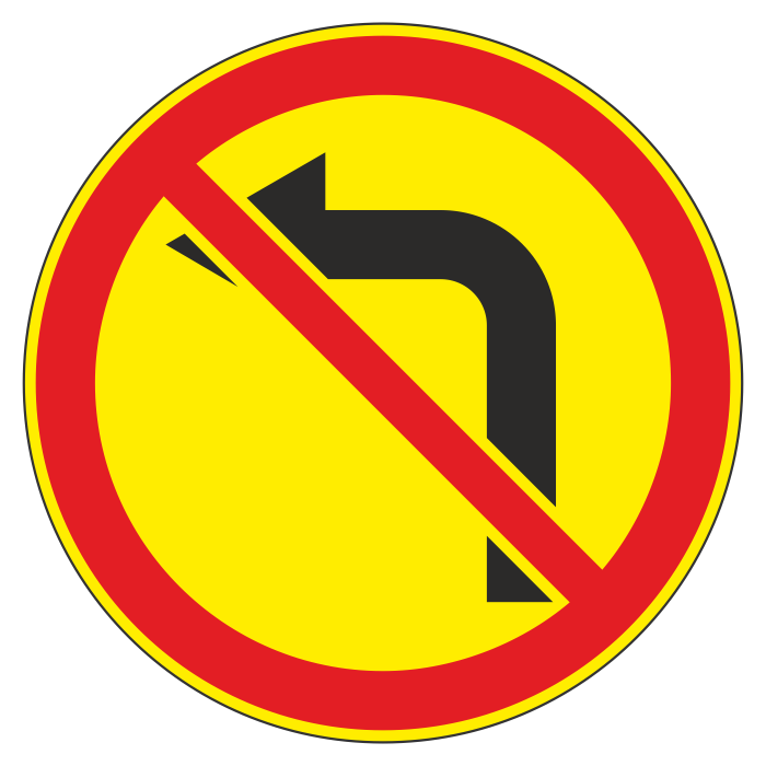 Дорожный знак 3.18.2 «Поворот налево запрещен» (временный) (металл 0,8 мм, I типоразмер: диаметр 600 мм, С/О пленка: тип Б высокоинтенсивная) в Кызыле купить