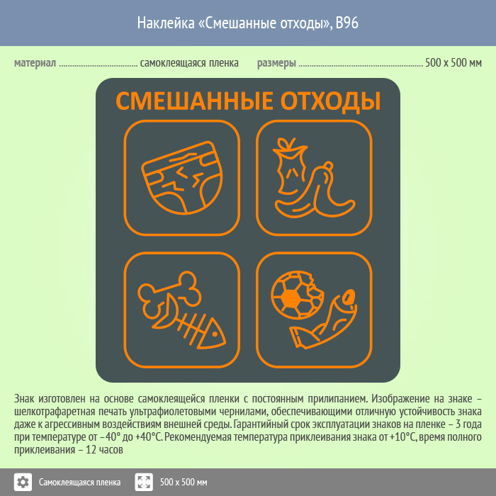 Наклейка на бак «Смешанные отходы», B96 (пленка, 500х500 мм) в Кызыле купить