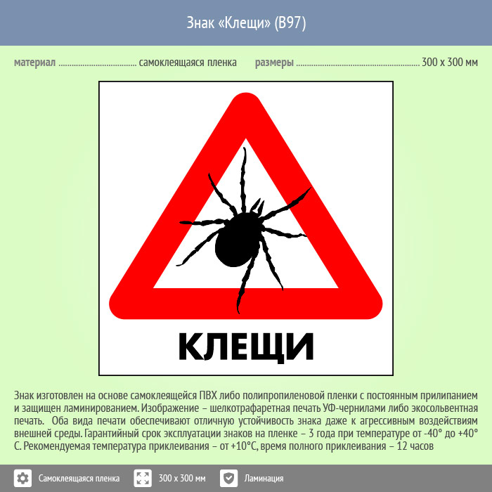 Знак «Клещи», B97 (пленка c ламинированием, 200х200 мм) в Кызыле купить