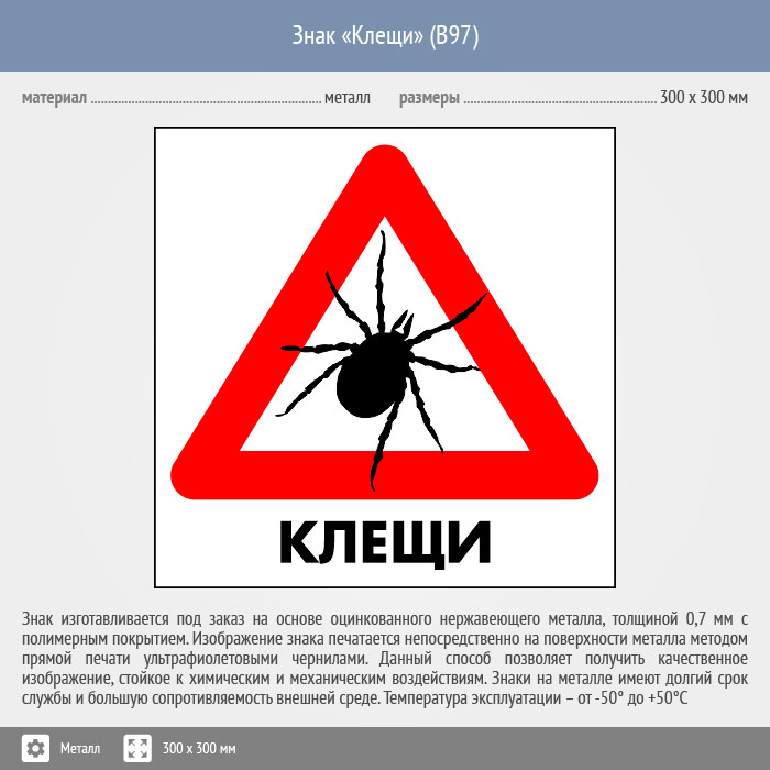 Знак «Клещи», B97 (металл, 200х200 мм) в Кызыле купить