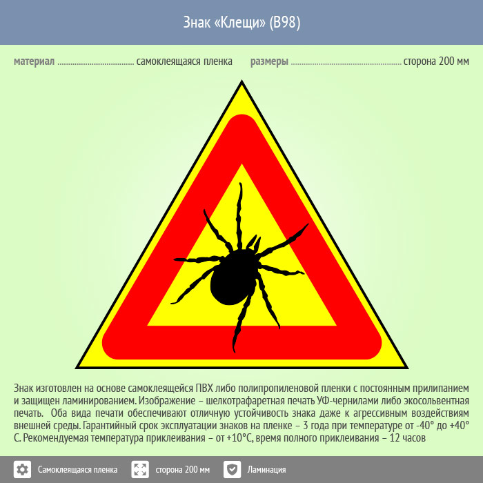 Знак «Клещи», B98 (пленка c ламинированием, сторона 300 мм) в Кызыле купить
