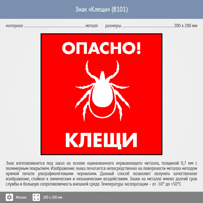 Знак «Опасно! Клещи», B101 (металл, 200х200 мм) в Кызыле купить
