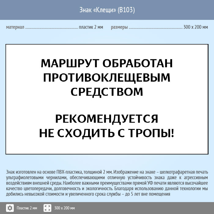 Знак «Клещи», B103 (пластик, 400х300 мм) в Кызыле купить