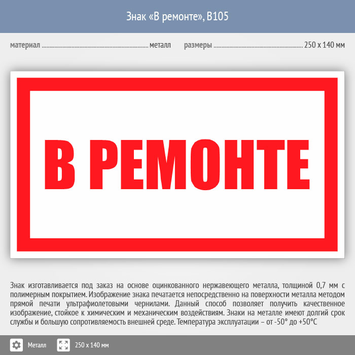 Знак «В ремонте», B105 (металл, 250х140 мм) в Кызыле купить
