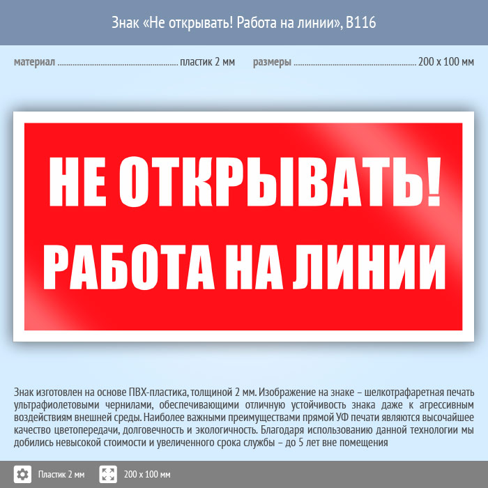 Знак «Не открывать! Работа на линии», B116 (пластик, 200х100 мм) в Кызыле купить
