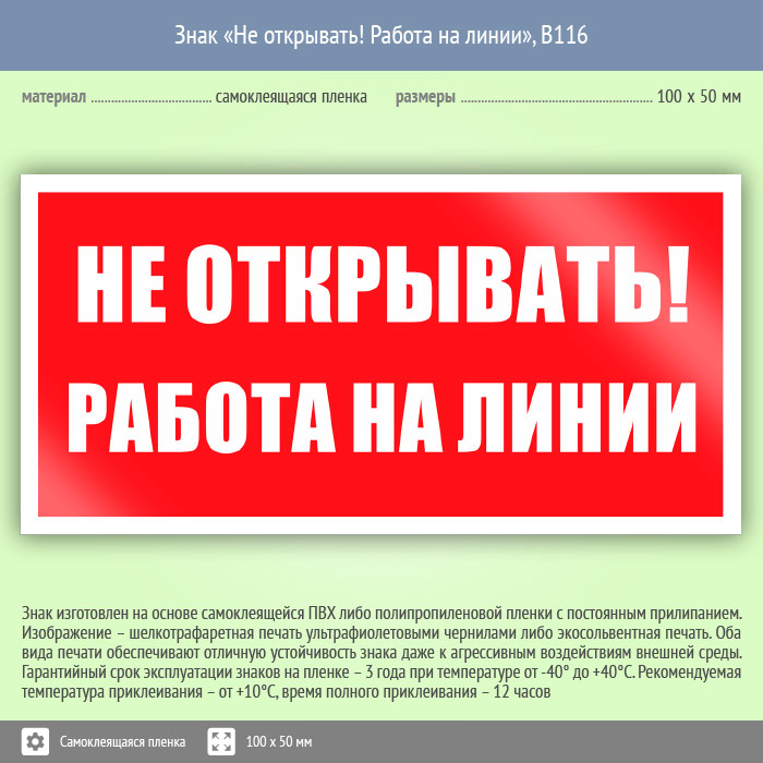 Знак «Не открывать! Работа на линии», B116 (пленка, 100х50 мм) в Кызыле купить