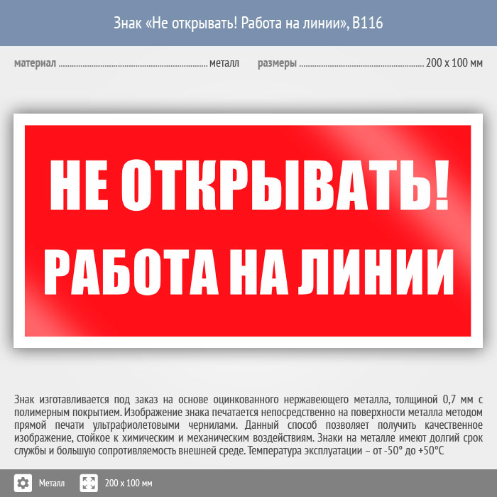 Знак «Не открывать! Работа на линии», B116 (металл, 200х100 мм) в Кызыле купить