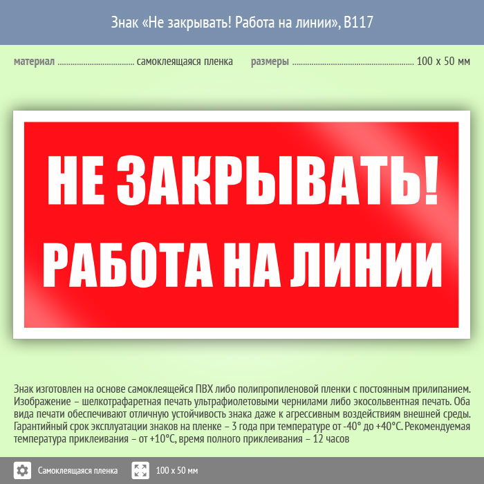Знак «Не закрывать! Работа на линии», B117 (пленка, 100х50 мм) в Кызыле купить