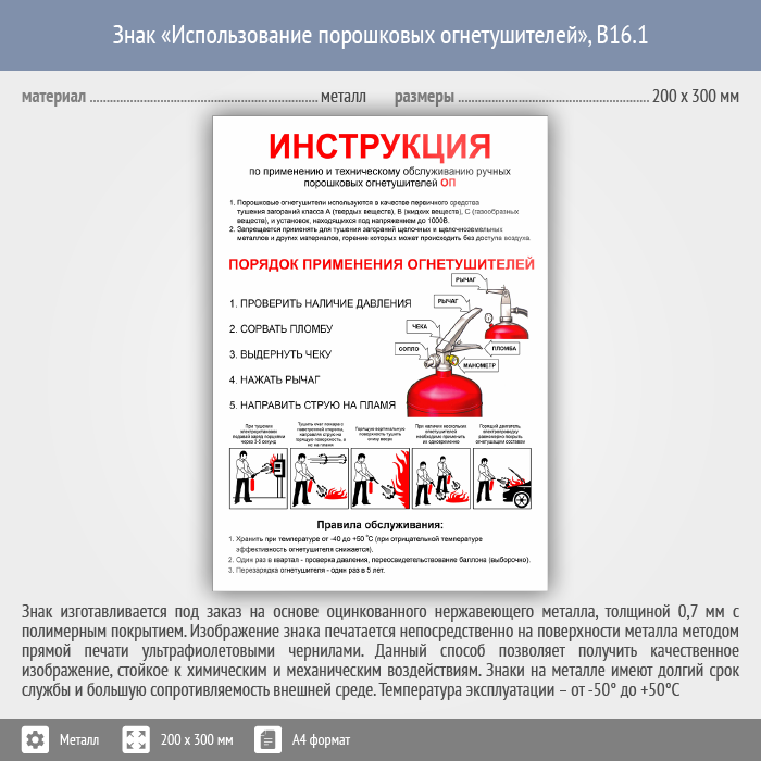 Знак «Использование порошковых огнетушителей», B16.1 (металл, 200х300 мм) в Кызыле купить