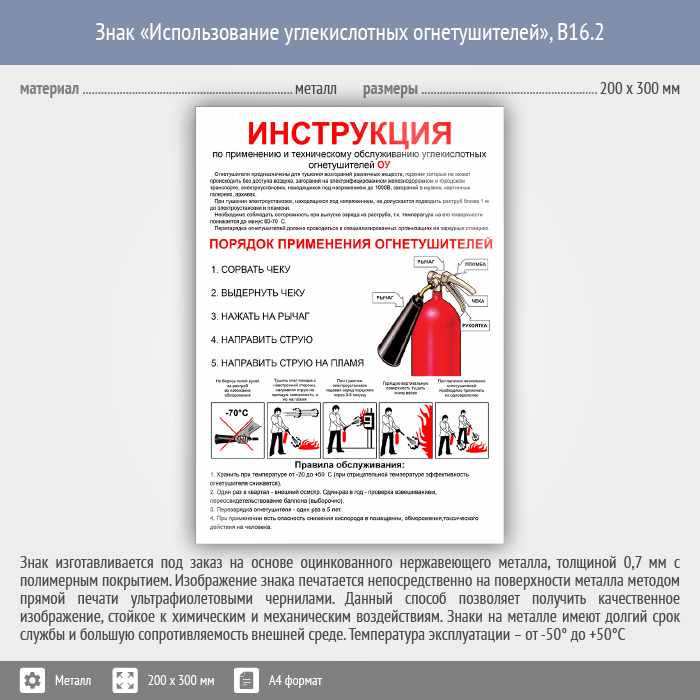 Знак «Использование углекислотных огнетушителей», B16.2 (металл, 200х300 мм) в Кызыле купить