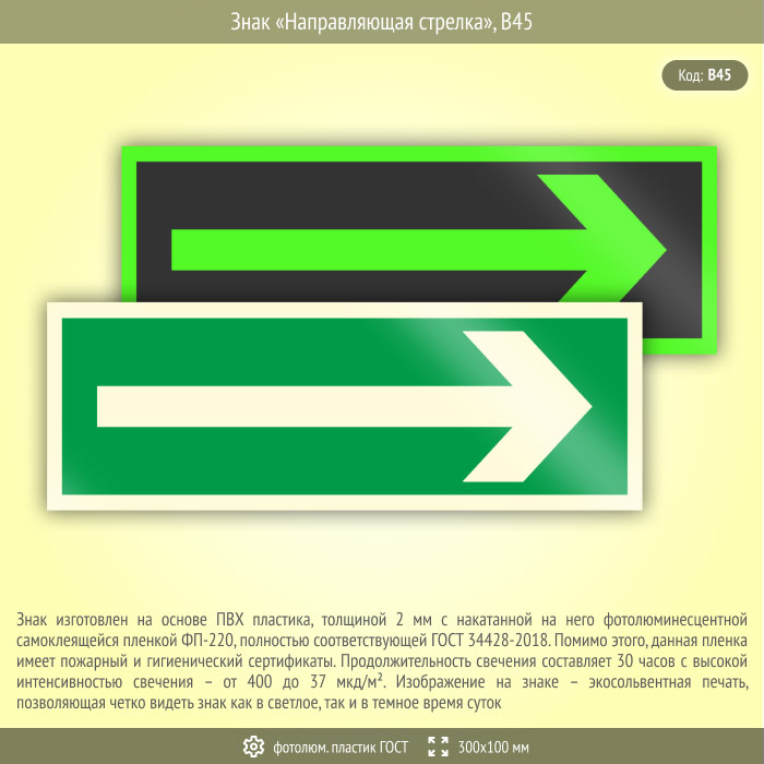 Знак «Направляющая стрелка», B45 (фотолюминесцентный пластик ГОСТ 34428-2018, 300х100 мм) в Кызыле купить