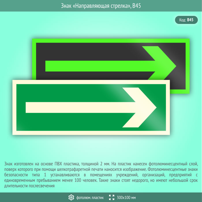 Знак «Направляющая стрелка», B45 (фотолюминесцентный пластик, 300х100 мм) в Кызыле купить
