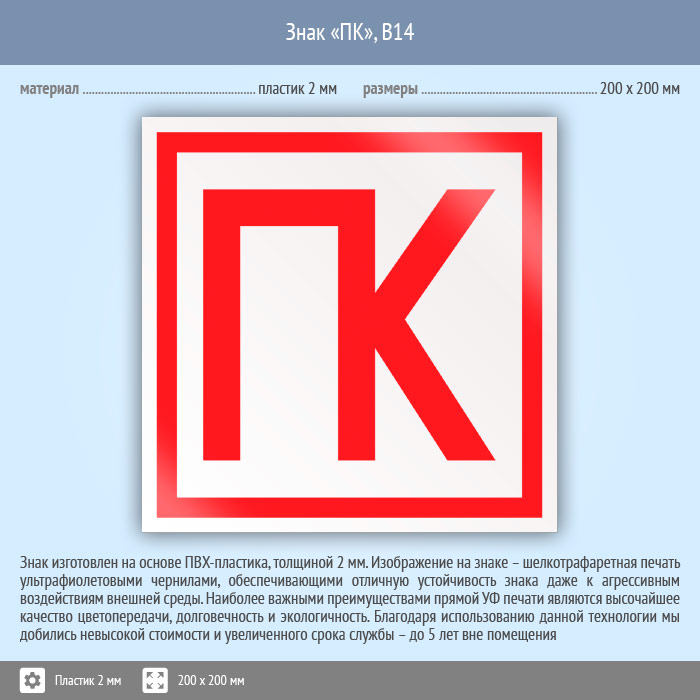 Знак «ПК», B14 (пластик, 200х200 мм) в Кызыле купить