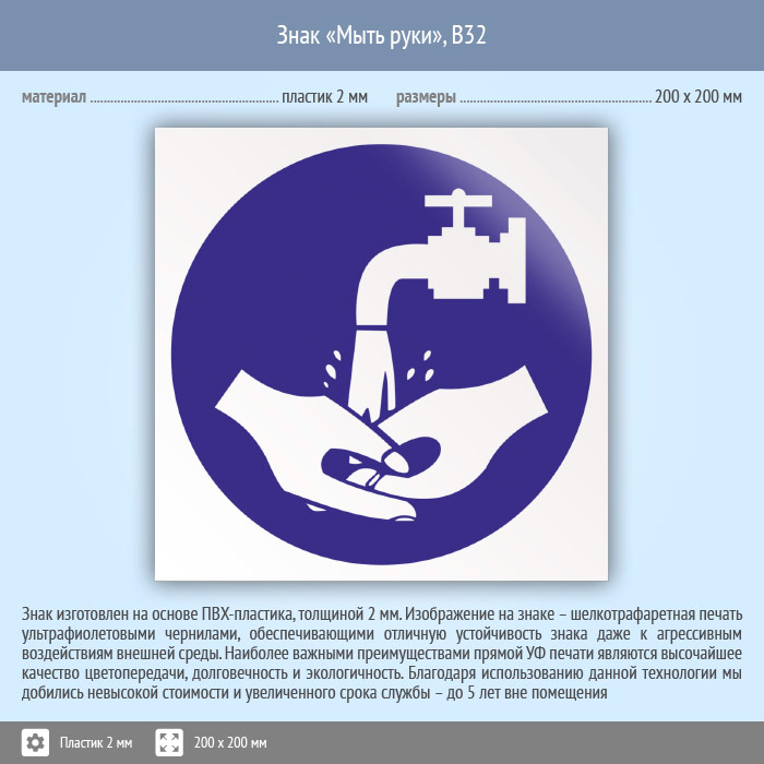 Знак «Мыть руки», B32 (пластик, 200х200 мм) в Кызыле купить