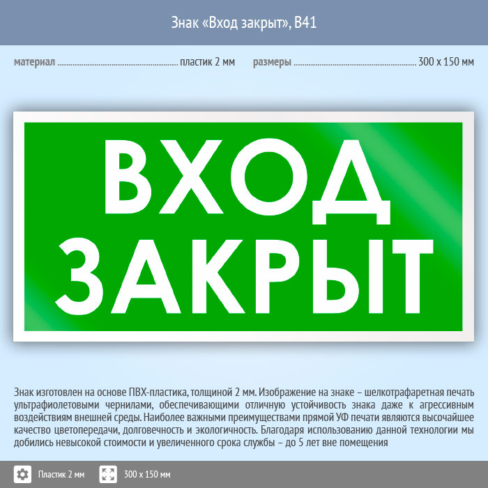 Знак «Вход закрыт», B41 (пластик, 300х150 мм) в Кызыле купить