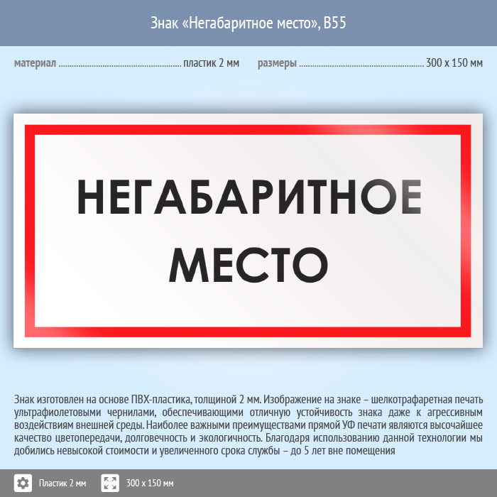 Знак «Негабаритное место», B55 (пластик, 300х150 мм) в Кызыле купить