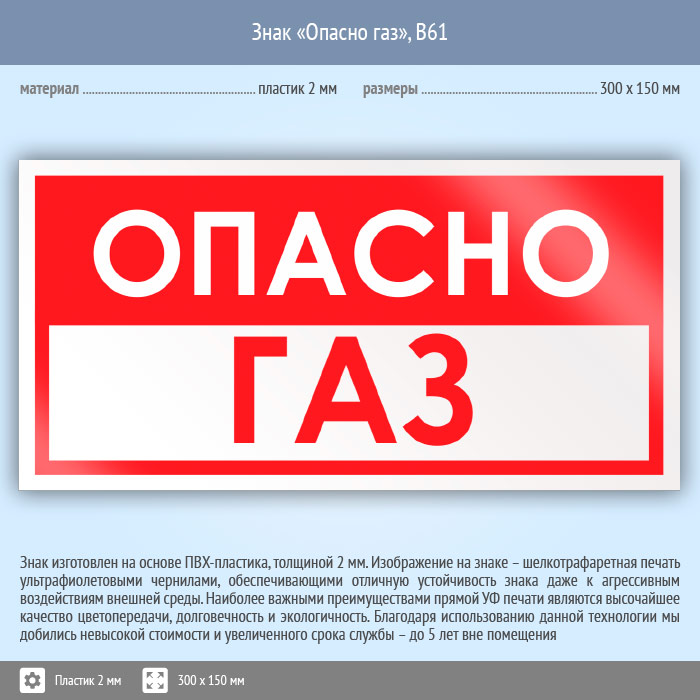 Знак «Опасно газ», B61 (пластик, 300х150 мм) в Кызыле купить