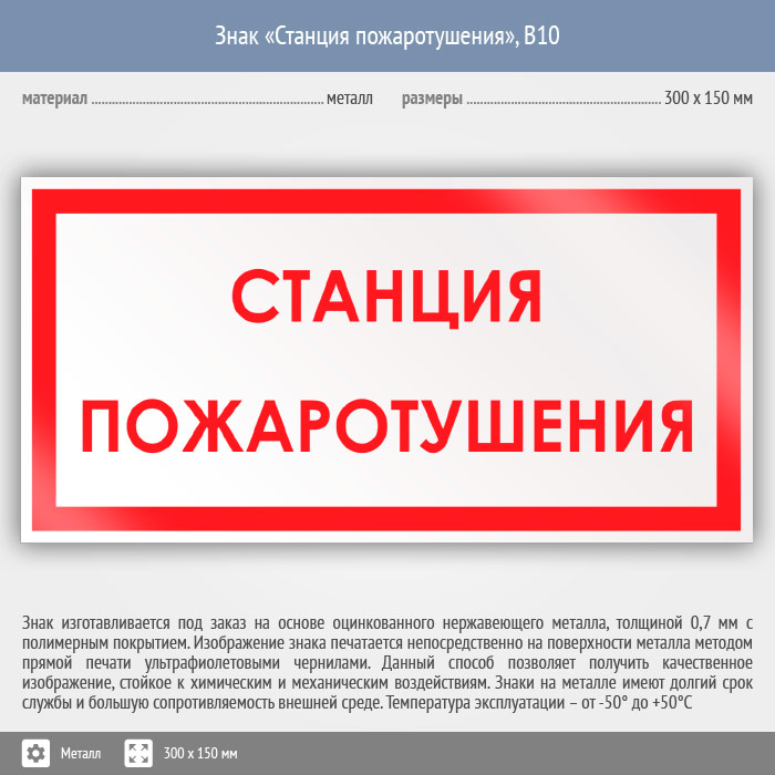 Знак «Станция пожаротушения», B10 (металл, 300х150 мм) в Кызыле купить